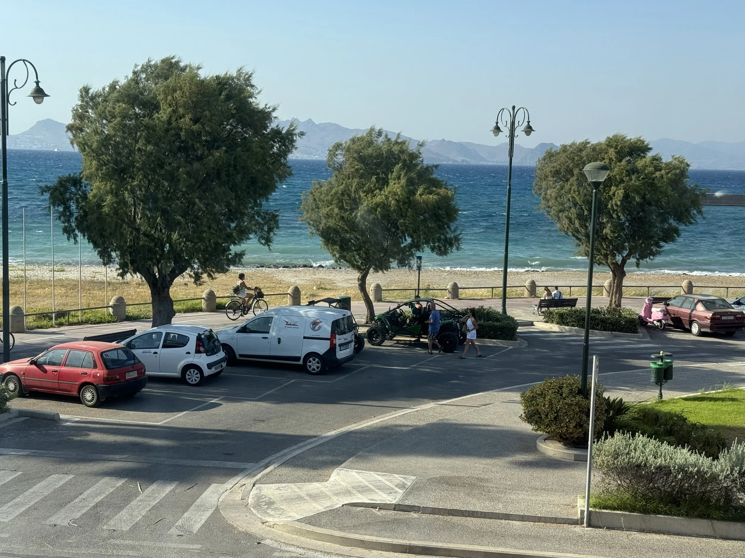 Our one hotel splurge is the Kos Divine Hotel. Since we would only be here one night, I thought it would be nice to have a room with a view of the Aegean and a king size bed. Also wanted to be near the port to keep driving to a minimum.