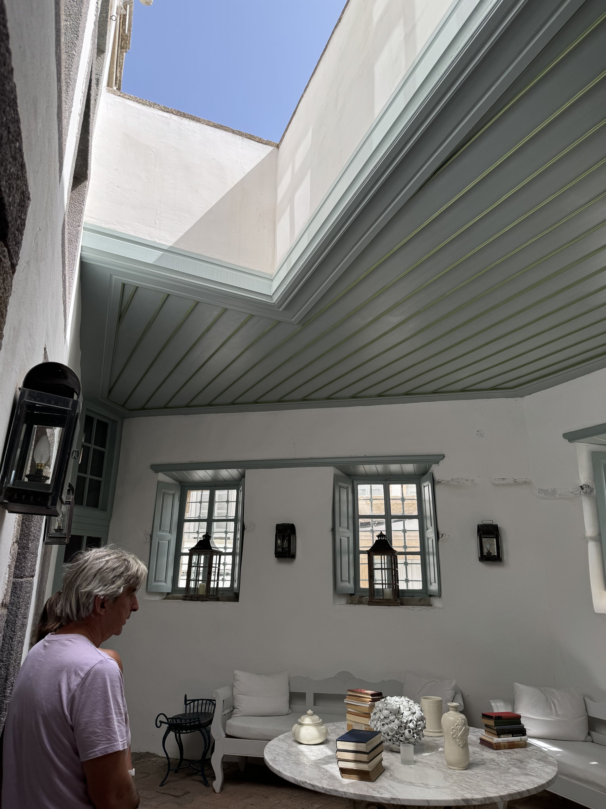 What a surprise to find that the staircase opened to a sitting area on the roof before leading into more rooms.