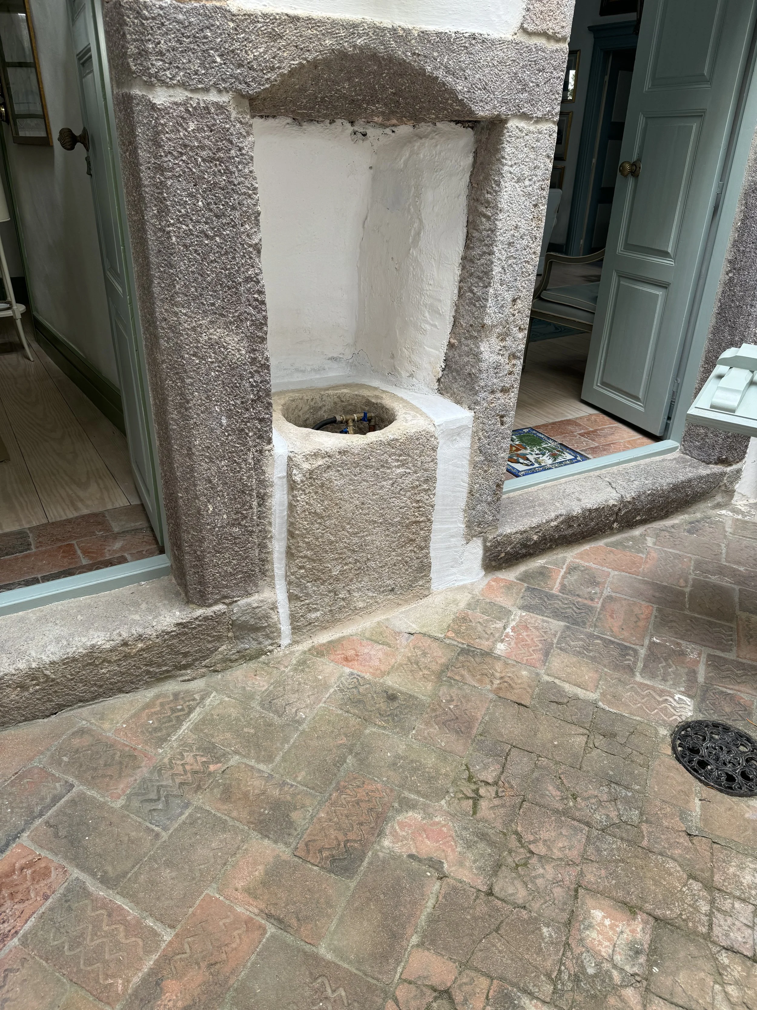 He pointed out how the floors were original, and he removed the lid from the well, (pictured between the two doorways) explaining how their neighbors back then from around the village would have come to them to get fresh water.