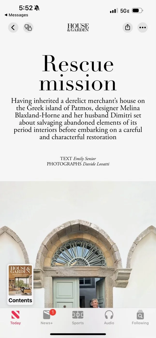 A couple of months after we got home, Melina and Dimitri’s home was featured in a House & Garden magazine.