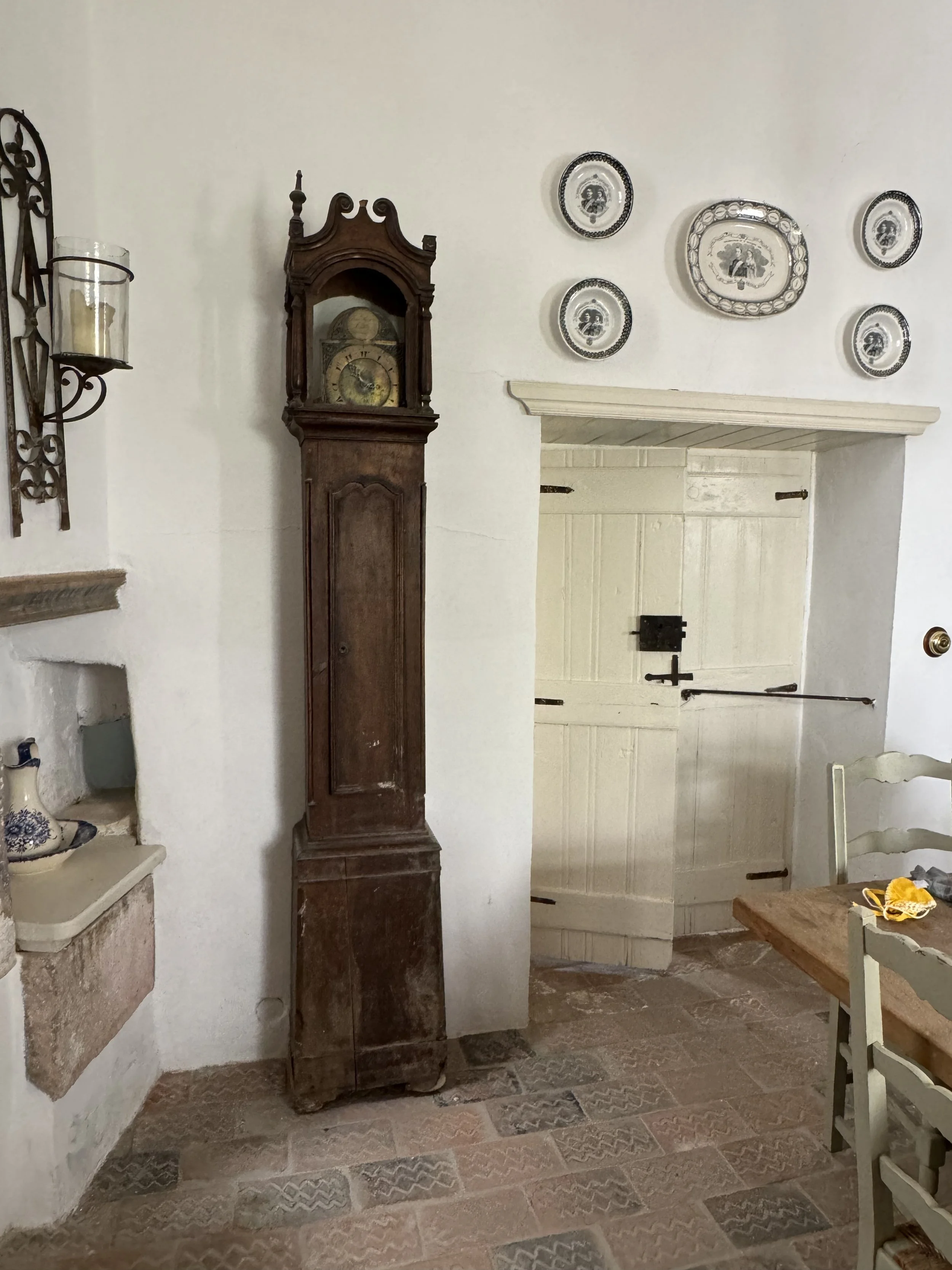 From there, Dimitri took us back into the breakfast room, and showed us the dishes on the wall and the grandfather clock that were original to the home.