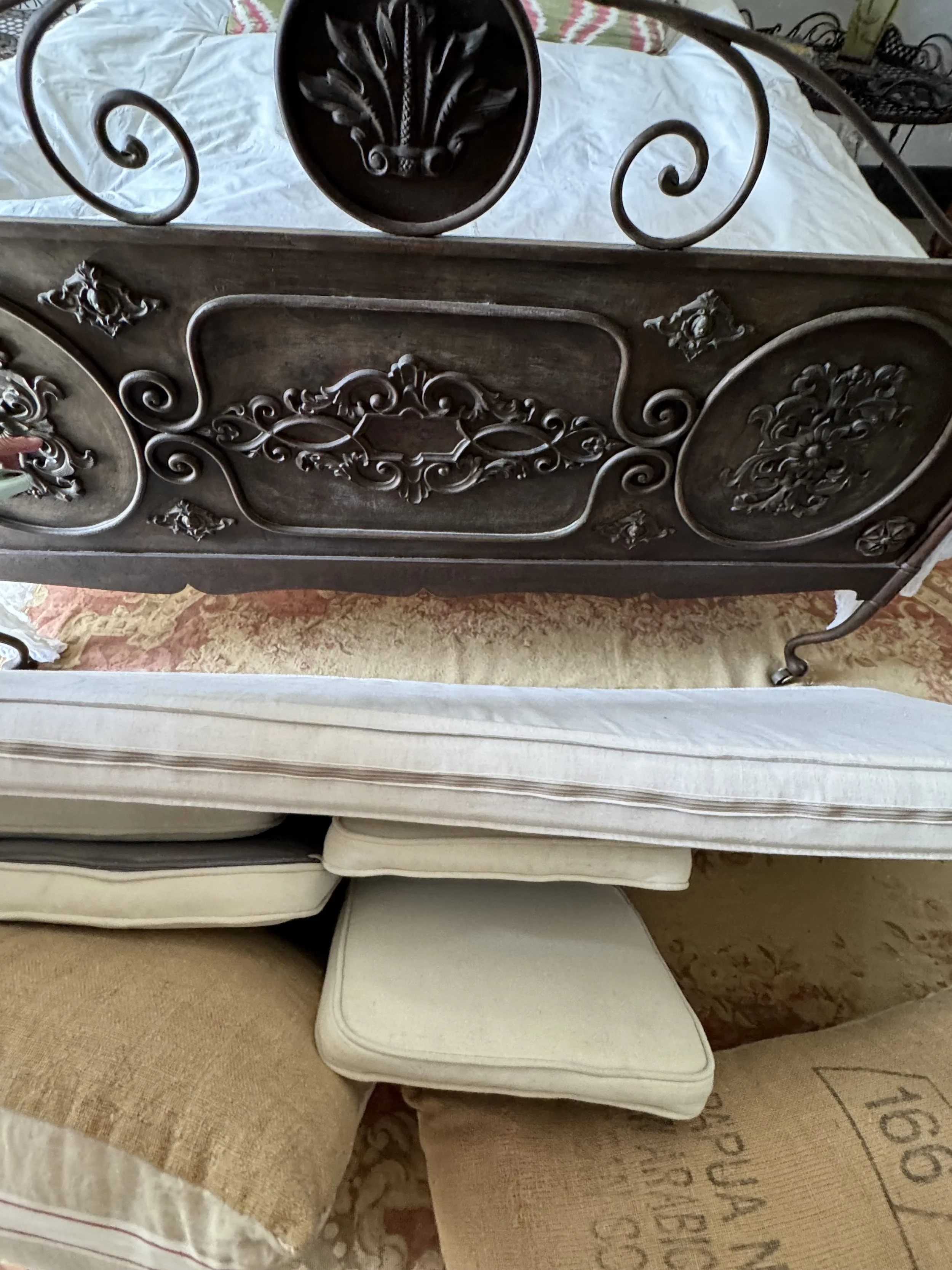 As you go down the cobblestone walkway, you notice a balcony overhead. Cookie explained that before Melina and Dimitri acquired the house, in 2001, the balcony was about to fall off onto the ground into the street. Someone pulled it into the house. Melina explained, “We’re so fortunate that someone brought the balcony in and that we were able to put it back in its original place.”