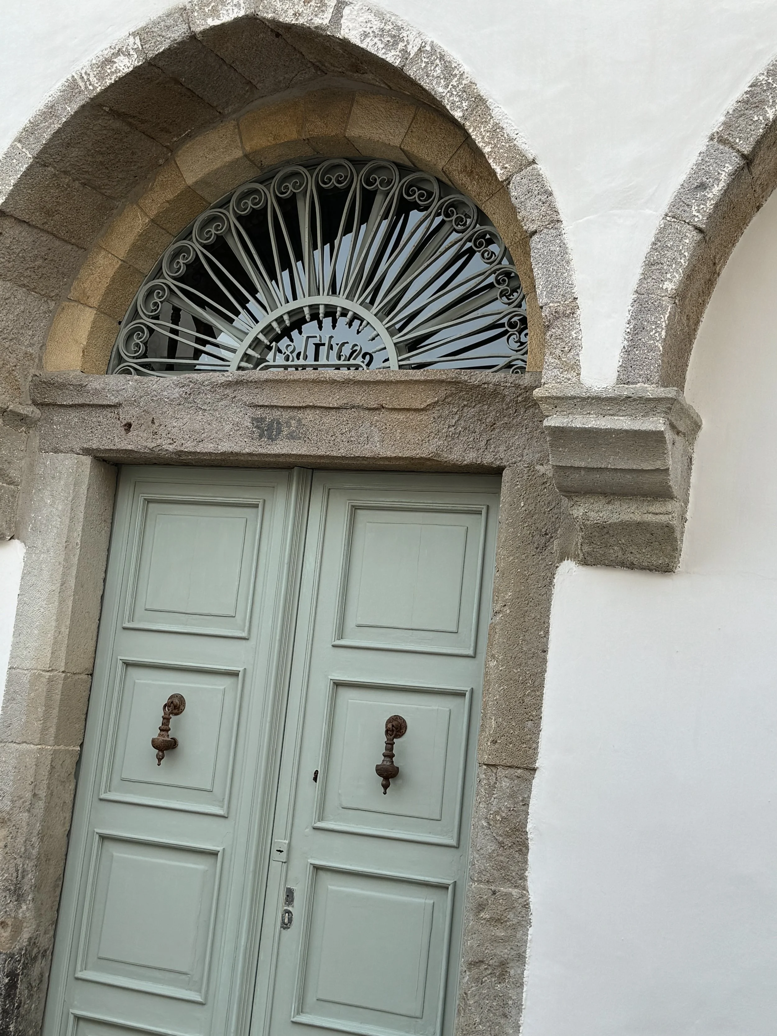 The home Papouli grew up in takes up an entire corner, so the doors near the bakery are actually the back doors. Turn left, walk down the alley beneath the balcony of their home on the right, and when you turn again, you face their front door.