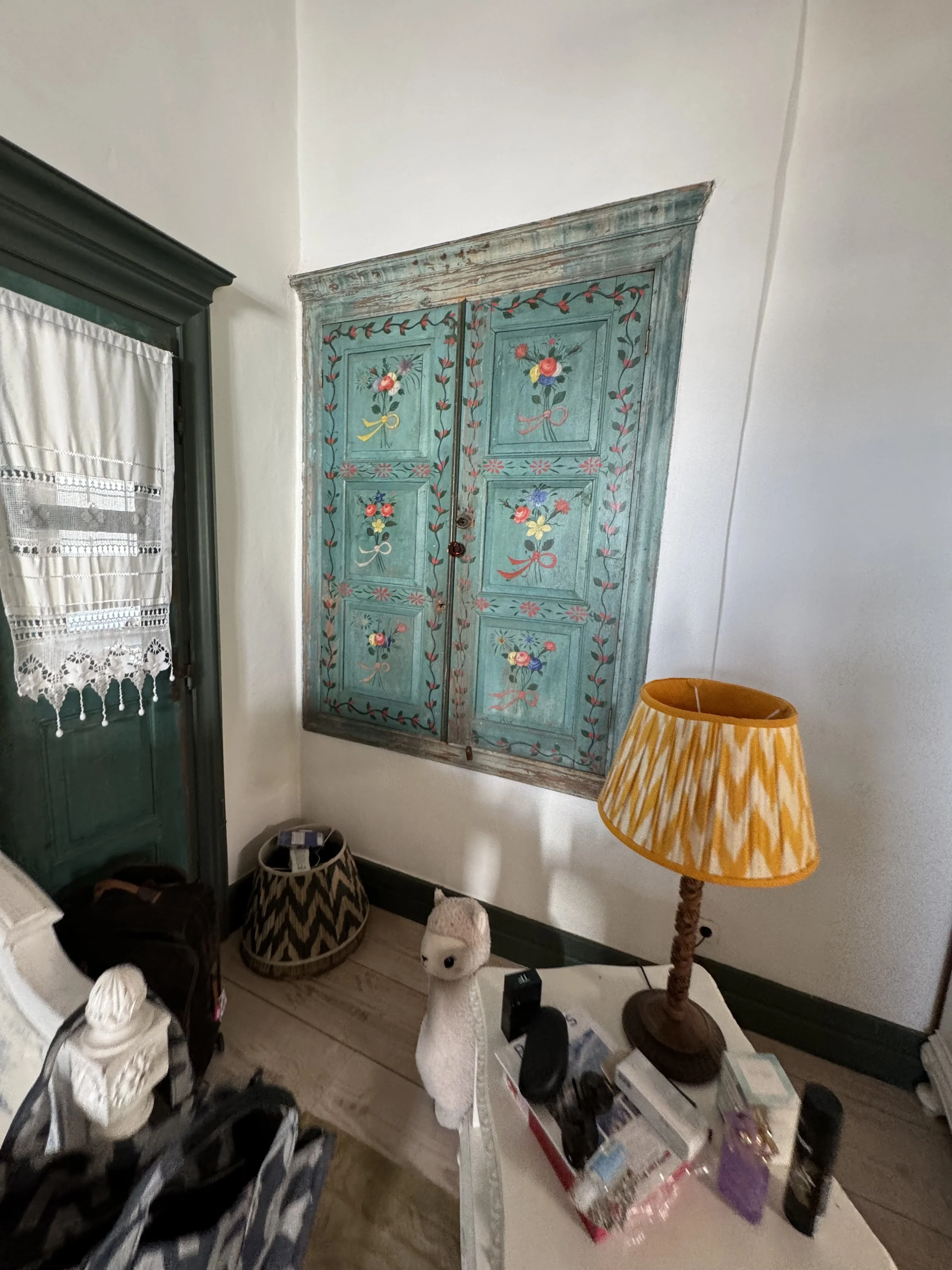 I was amazed by the care and beauty Melina and Dimitri put into the restoration of Papouli’s home and asked Dimitri what kind of work he did. I was not surprised when he told me that he restores old homes. You can also see how beautifully and artfully their home is decorated. Cookie explained that Melina is an interior designer, so it all made sense!