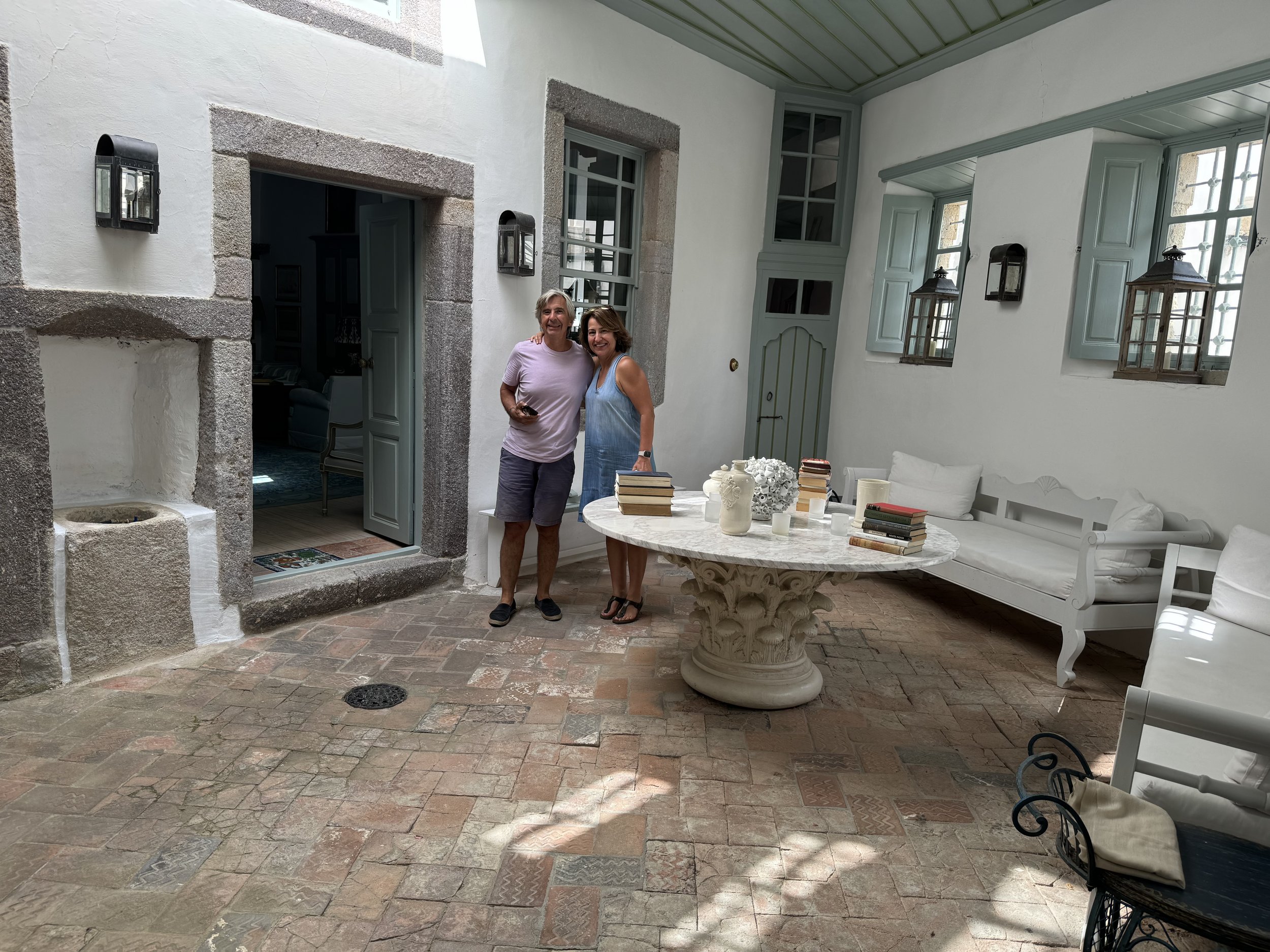 After we left Patmos, I was thinking about them and wondered if either of them had a website. An internet search for Melina Horne yielded this interview and I discovered she is known for creating unique and luxurious home decor items. Dimitri’s site of restored homes is every bit as exquisite. But what I find most striking in the midst of such high profile people is how down to earth they both are. Both true joys to talk to.