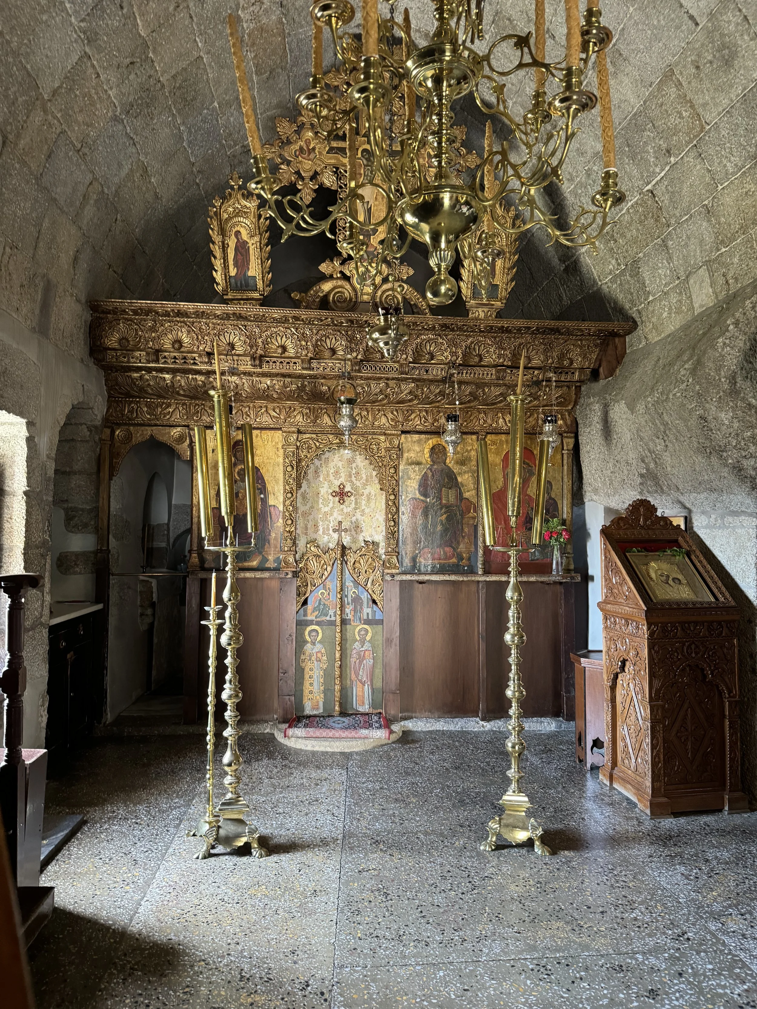 Once inside, it resembles the interior of a Greek Orthodox Church.